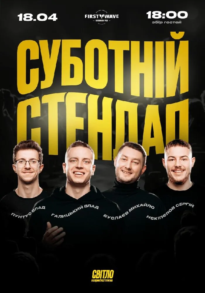 Стендап-простір «Світло» запрошує на суботній стендап у самому центрі міста. Це вечір живого гумору, де виступають коміки з актуальними жартами, імпровізацією та історіями, у яких легко впізнати себе. Щовихідних тут збираються ті, хто хоче провести час легко і з настроєм — у форматі, де сміх стає найкращим відпочинком після насиченого тижня.