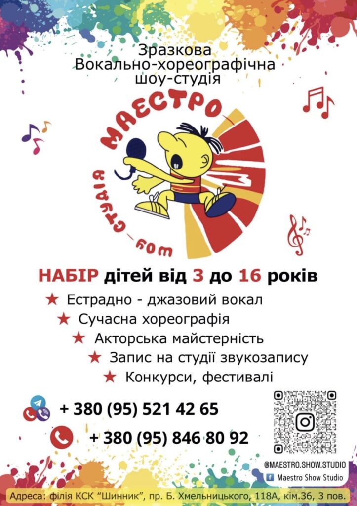 Зразкова вокально-хореографічна шоу-студія "Маестро" народилася ще у 1996 році з мрії Юрія Корсакова створити простір, де діти могли б співати й розвиватися.