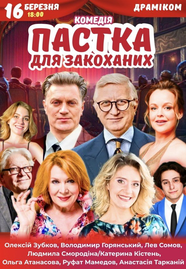 Чудова комедійна вистава "Пастка для закоханих" знову в Дніпрі. Без чого освідчена людина на землі не може жити? Без чого кожен з нас почуватиметься нещасним у власному житті? Звичайно, це – любов. Щиро закохані люди нічого поруч з собою не помічають… Але сама думка, що можна втратити кохану людину, змушує героїв комедії вчиняти дивні, іноді навіть божевільні вчинки. Це блискуча, віртуозна класична комедія положень з присмаком іспанської запальності та темпераментом у виконанні зірок українського театрального мистецтва.
