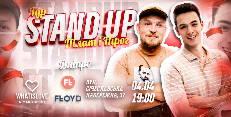 Двоє коміків, які точно знають, як перетворити звичайний вечір на свято якісного українського гумору. Андрій Пілат — майстер щирої комедії та учасник багатьох ютуб шоу. Його гумор — це як розмова з кращим другом: просто, чесно і до сліз. Ярослав Пірог — учасник багатьох популярних YouTube й теле-проєктів. Харизма, імпровізація та жарти, які б’ють точно в ціль!