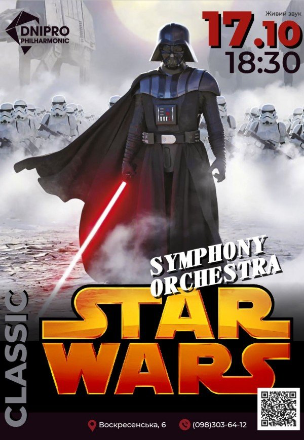Грандіозна музична подія-подорож галактичного масштабу – симфонічний концерт "Star Wars", де світло та темрява ведуть одвічну боротьбу, де герої постають перед вибором, а музика розповідає історії, що захоплюють дух. Відчуйте силу музики та станьте частиною великої саги. На вас чекають несподівані сюрпризи, магія світла та спецефекти.