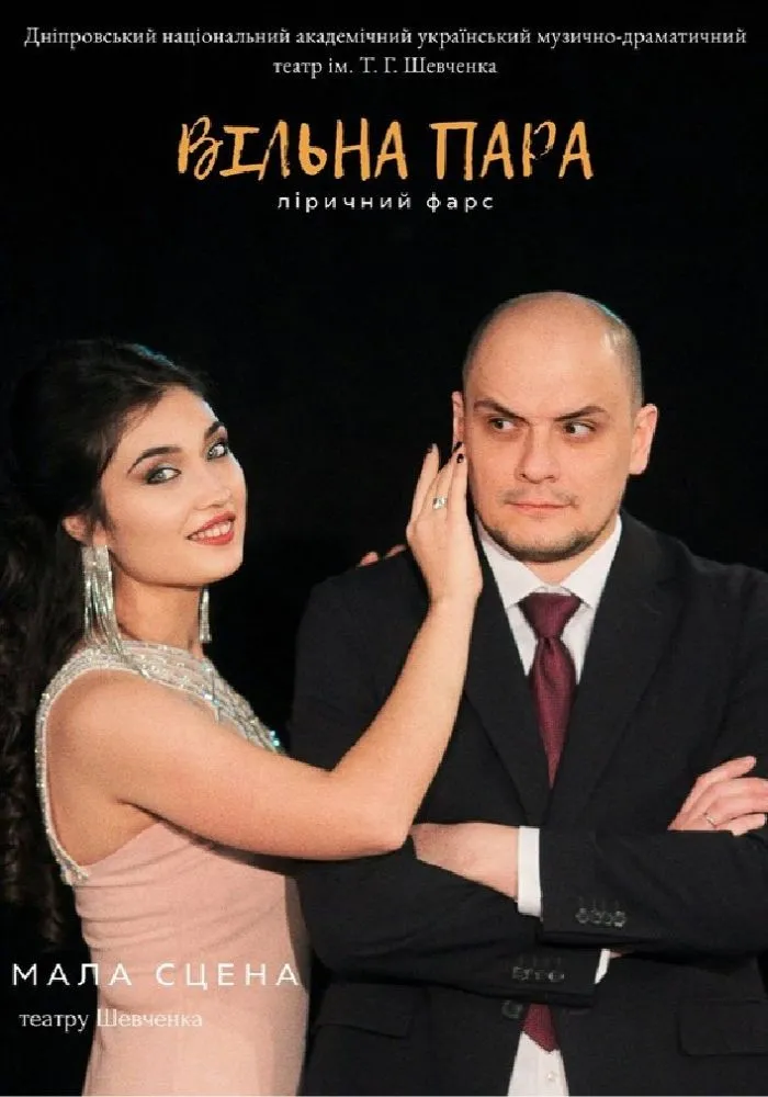 Дніпровський театр ім. Т. Г. Шевченка запрошує на ліричний фарс "Вільна пара". За мотивами п’єси всесвітньо відомого італійського драматурга та лауреата Нобелівської премії Даріо Фо, який у своїх драмах порушує непрості проблеми стосунків чоловіка та жінки, гендерної нерівності, любові та зради, в яких немає переможця.