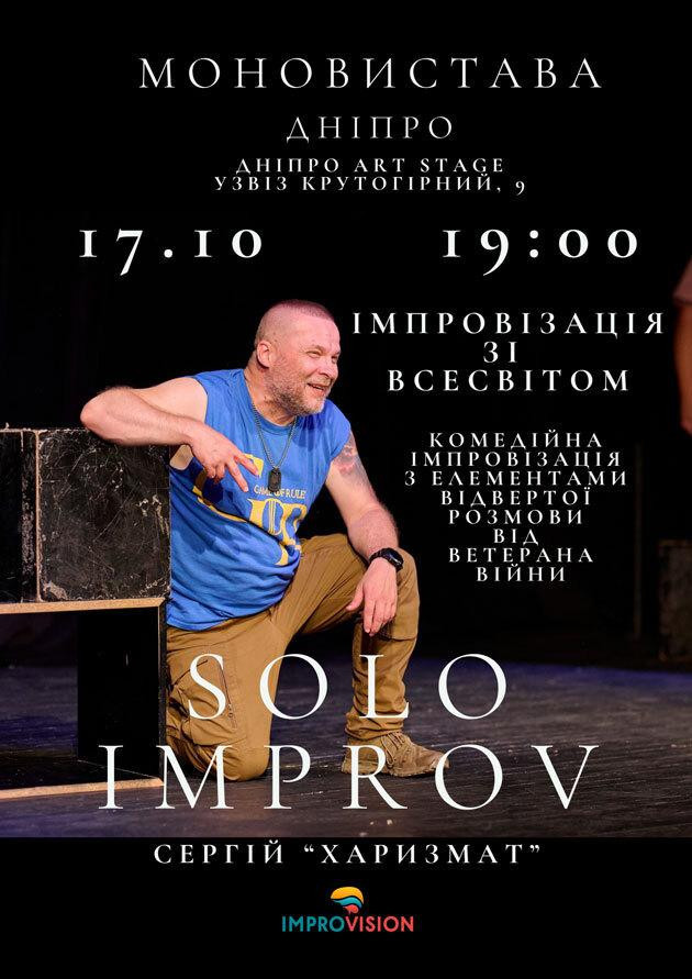 Сергій "Харизмат" – ветеран та засновник першої в Україні спільноти комедійної імпровізації, запрошує на моновиставу зі смаком прикладної психології "Імпровізація зі Всесвітом". Це 100% імпровізація із залученням глядачів. Ви – режисери та сценарісти. Ви – той Всесвіт, який вносить свої корективи в життя.