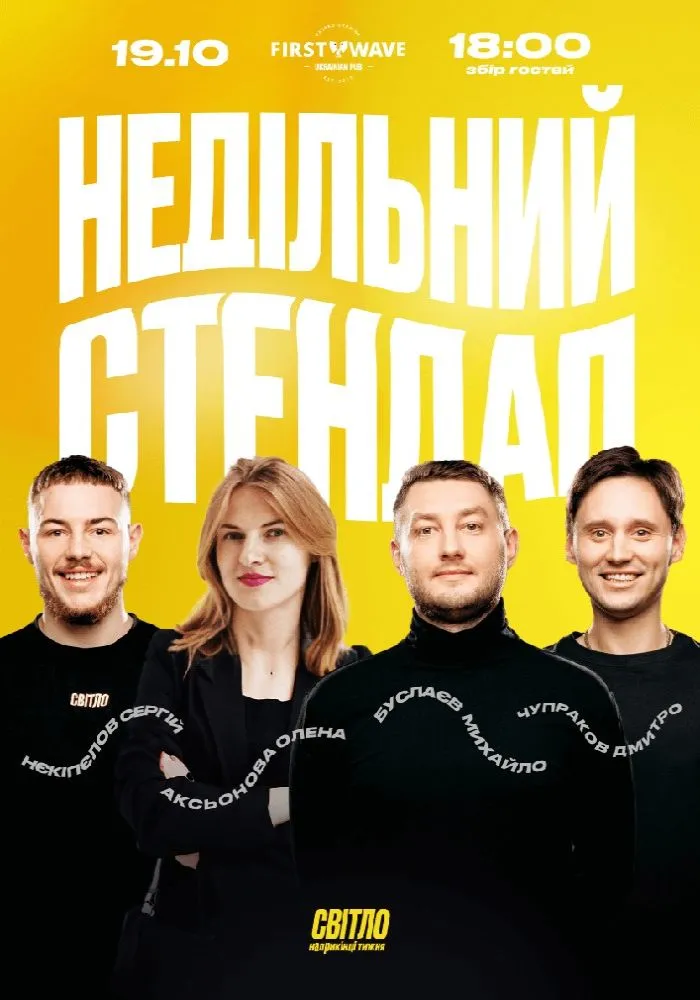 19 жовтня 18:00, Стендап-простір "CВІТЛО" в "First Wave", вул. Короленка 3, квитки тут.