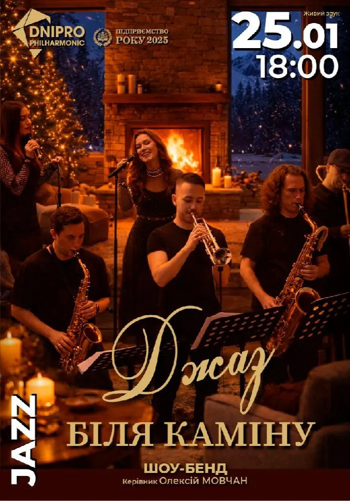 Уявіть: затишна зала, м’яке крісло, бурштинові відблиски вогню, що танцюють на стінах. Така жива атмосфера чекатиме вас на "Джазі біля каміну". У програмі улюблені різдвяні мелодії у джазовому аранжуванні. Ви почуєте ноти оксамитового саксофону, грайливі клавіші фортепіано та неперевершений вокал провідних солістів філармонії.