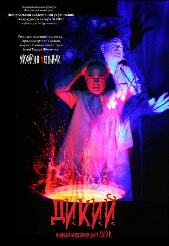 Театр одного актора "Крик" запрошує на виставу "Дикий" за мотивами новели С. Цвейга "Амок" (сучасна версія). Якості, не притаманні цивілізованій людині, іноді стають головним поводирем її дій. Руйнують нервову систему, кар'єру, життя. Коли людина втратила все, то за останнє вона бореться з люттю... Головний герой – лікар, який усе життя допомагав людям. Він звик відчувати себе комусь потрібним. Але певні обставини змушують його стати відлюдником, диким. І ця сама дикість, помножена на хворобливе самолюбство і гординю, стає причиною ланцюжка драматичних подій…