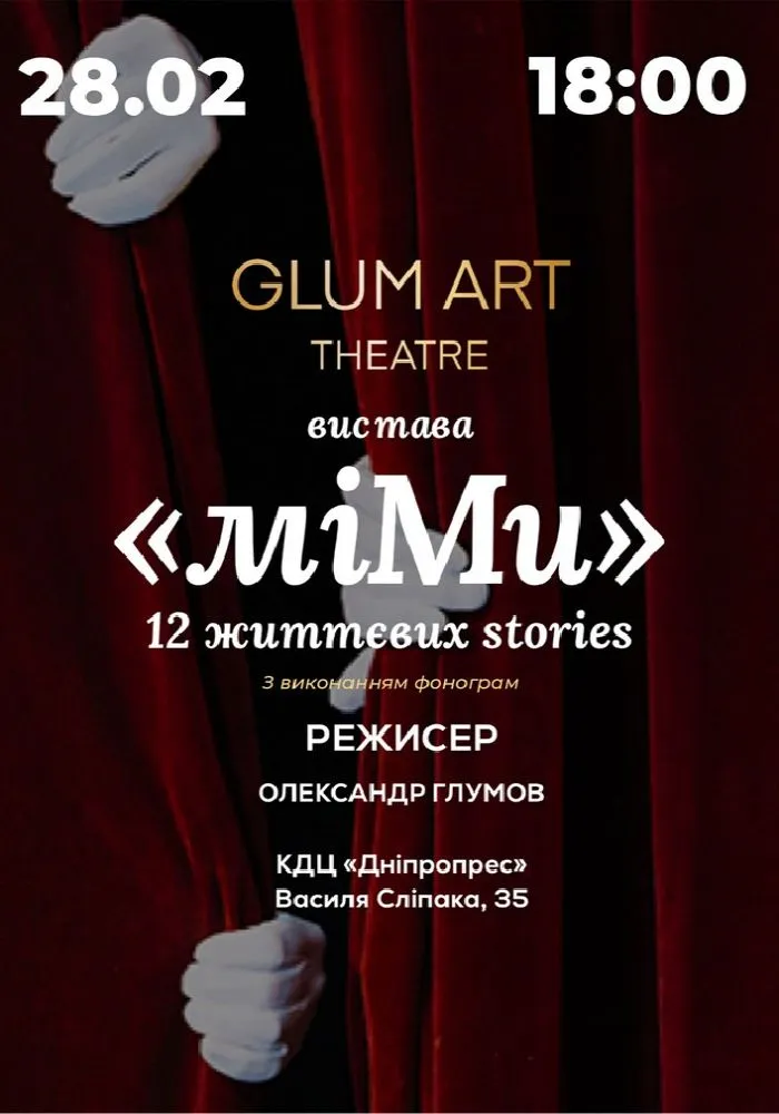 Театр "GlumArt" запрошує на захоплююче театральне дійство "Мі.Ми", під час якого глядачі поринуть у світ магії, фантастики та філософії. Атмосфера вистави пронизана космічним простором, де кожен персонаж представляє в собі таємничу силу життя. Протягом вистави ви побачите 12 захопливих сюжетів, що поєднують у собі різні жанри. Глядачі відчують широкий спектр емоцій: від сміху до сліз, від захоплення до філософських роздумів. Тут звучать ліричні та драматичні ноти, розкриваються величні філософські сюжети, які зачарують кожного глядача.