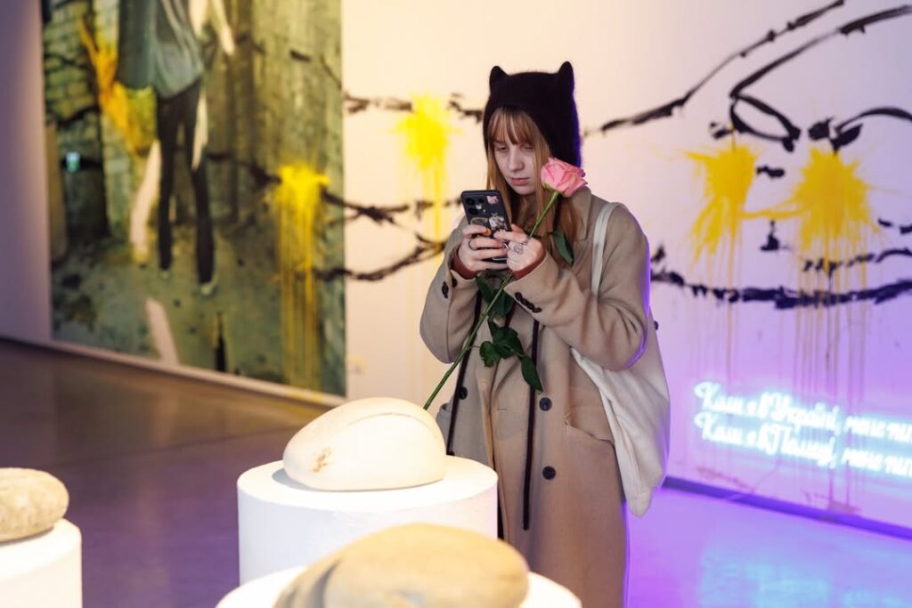 Наразі у просторі працює виставка Катерини Конюшенко "Мапування". Цей проєкт обʼєднує серію робіт, де мисткиня закарбовує емоційну географію безпеки та опори Місця, куди вона повернулась в час повномасштабного вторгнення.