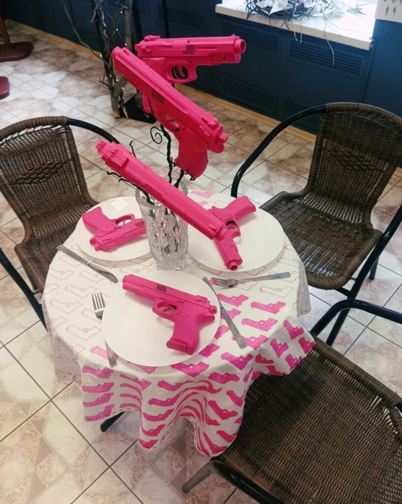 Ася – художниця-графік з Луганська, яка працює на межі абсурду та експресії. У своїй роботі вона досліджує темні сторони психіки – біль, насилля, травми. "Сімейний обід" став візуальною метафорою розбитого побуту, де звичні речі виглядають загрозливо. Усе – у складній візуальній системі, де центральним образом постає вона сама. Її інсталяція – продовження серії графічних робіт, які вона створювала під час війни.