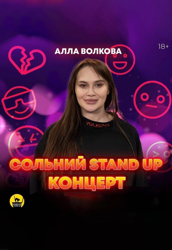 Харизматична і непередбачувана у своєму гуморі Алла Волкова у Дніпрі. Яскрава стендап-комікеса, чиї жарти чіпляють раз і назавжди і не лишають байдужим жодного глядача. Стиль комікеси відрізняється не лише блискучою самоіронією, а й жорсткістю, неочікуваністю та при цьому — завжди дотепністю та філігранністю.