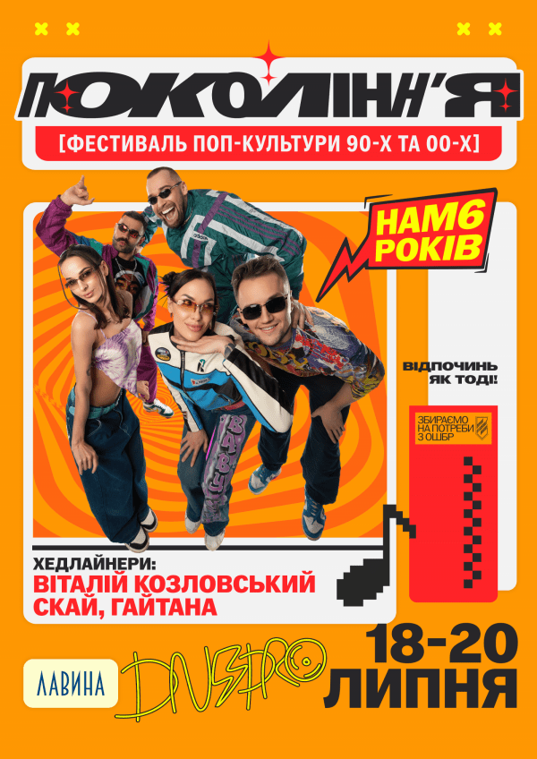 Третій фестиваль літнього сезону Покоління вже цими вихідними! Хедлайнери головної сцени: Віталій Козловський, СКАЙ, Гайтана. На вас чекає дві сцени з DJ сетами 90х та 00х, фотозони, настільні ігри та комп’ютерний клуб, стендап від СВІТЛО, фудкорт і бар. А також "Караоке на Майдані" з Ігорем Кондратюком.