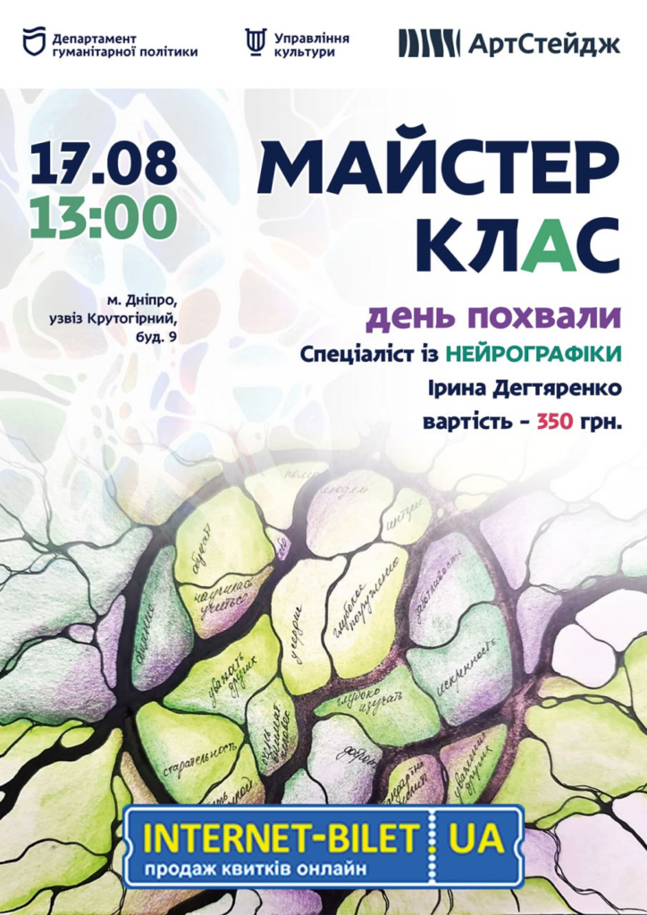 16 серпня 13:00, DniproArtStage, узвіз Крутогірний, 9. Вхід вільний. Реєстрація за посиланням.