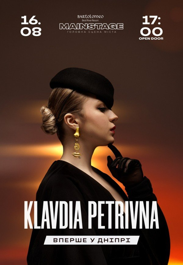 Вперше у Дніпрі виступить Klavdia Petrivna! Її голос — це чисті емоції, що пронизують до мурах. Її пісні — це саундтрек до наших переживань, спогадів і мрій. Від інтимної лірики до потужних гімнів покоління — цей вечір обіцяє бути незабутнім. Klavdia Petrivna — артистка, яка зуміла завоювати серця тисяч, залишаючись загадковою й справжньою.