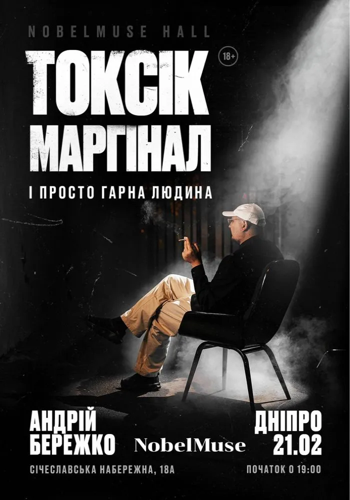 Токсік, маргінал і просто гарна людина — Андрій Бережко. Новий сольний стендап одного з найпопулярніших та найгостріших коміків України. Приготуйтеся до нової відвертої програми — про те, що справді хвилює Андрія сьогодні. Без романтичних прикрас, гостро, неочікувано та з фірмовою самоіронією і вибуховим гумором. На вас чекатиме півтори години потужної комедії, живої імпровізації та неймовірної атмосфери.