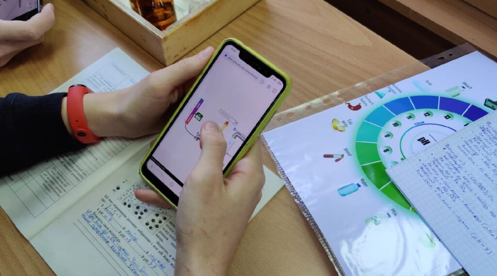 На уроках Вікторії Гаврилівни хімічні реакції проходять не лише у пробірках, а й у смартфонах. Учні запускають симуляції, розчиняють речовини дотиком пальця, стежать, як змінюється колір. Симуляції PhET (тобто віртуальні лабораторії) дозволяють робити досліди, які у класі були б надто складними або небезпечними.
