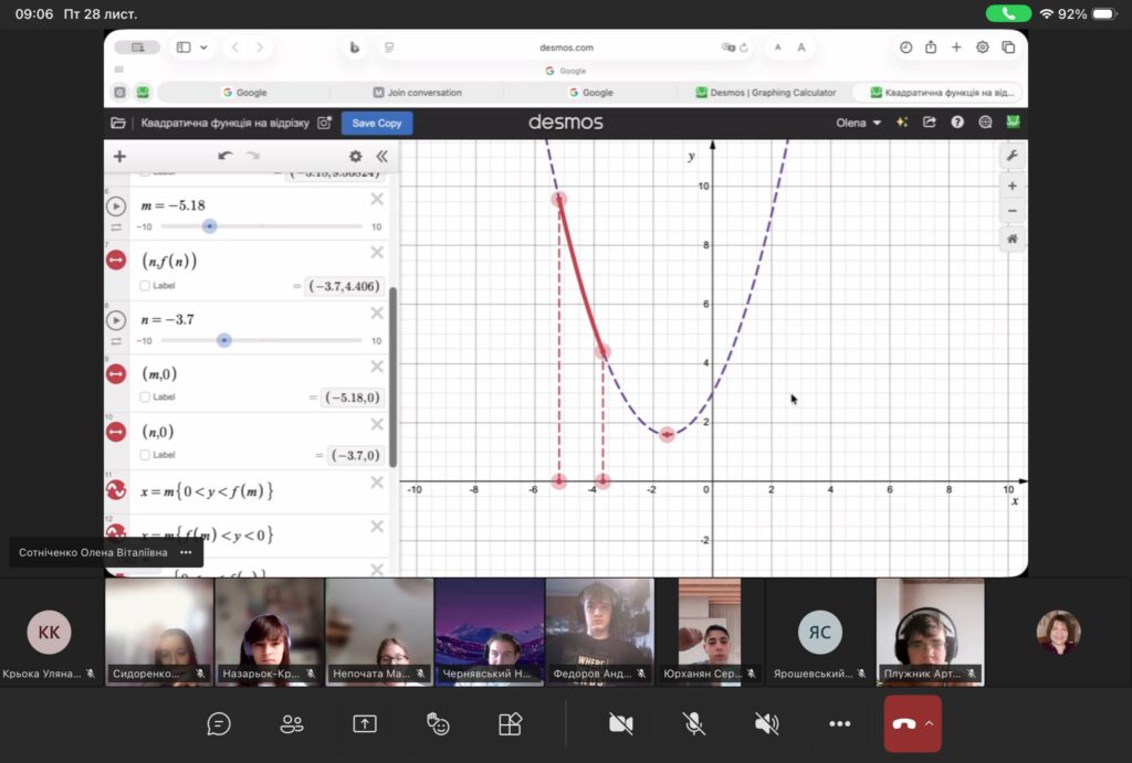 Викладання математики в Олени Сотніченко вже давно не обмежується підручником. Вона створила зручне цифрове середовище, де все під рукою – відеоуроки, тести, інтерактиви в GeoGebra та Desmos.