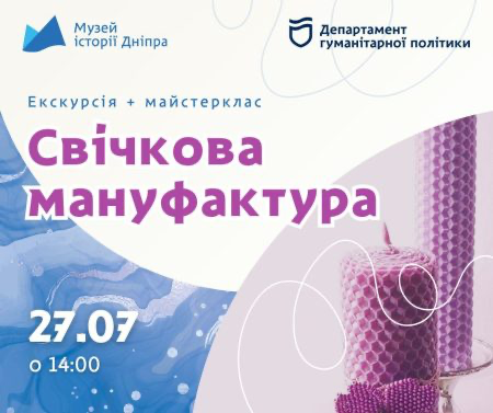 Музей історії Дніпра запрошує відвідати Свічкову мануфактуру. Цього разу створите свічку з неповторним медово-лавандовим ароматом. На Вас чекає не лише захопливий процес створення, а й історії і справжній маленький музейний "Прованс".