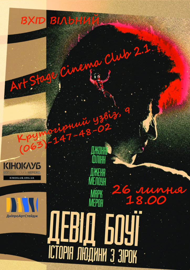 Art Stage Cinema Club повертається у новому форматі. Запрошують справжніх шанувальників та шанувальниць кіно на перегляд фільму "Девід Боуї: історія людини з зірок" режисера Гебріел Рендж (16+) про подорож Девіда Боуї до США в 1971 році.
