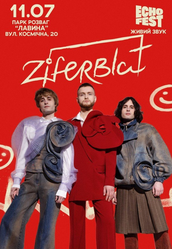 На ECHO FEST у Дніпрі – гурт ZIFERBLAT, який представляв Україну на Євробаченні з треком "Bird of Pray" і впевнено потрапив до топ-10. Це нове покоління української музики, що поєднує інтелігентний саунд, глибоку лірику й мультиінструменталізм. Також цими вихідними сцену будуть запалювати DANTES, Tricky Nicki, Freaky Siren та POSITIFF.