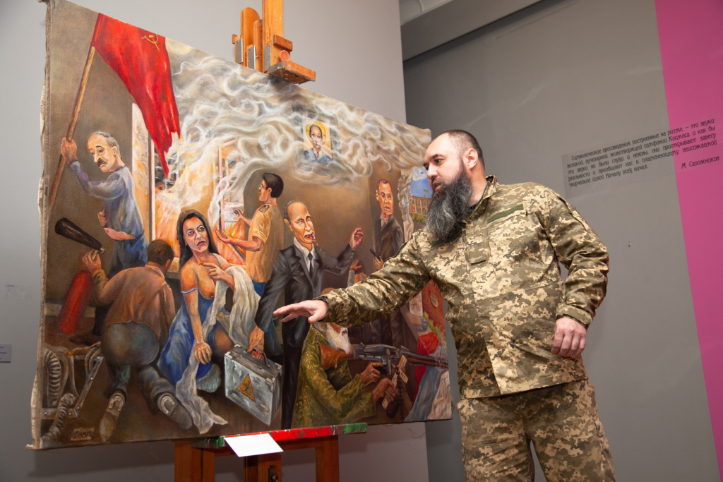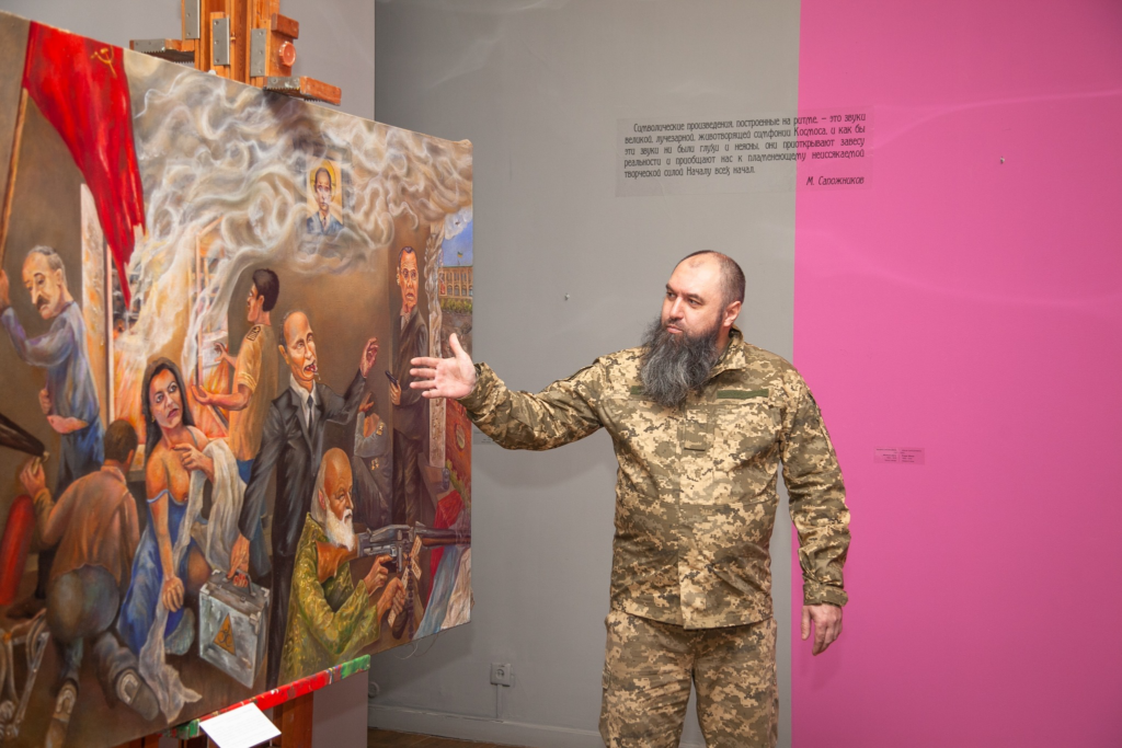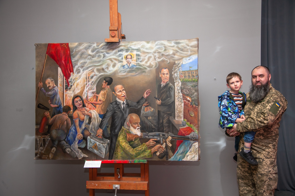 Перший проєкт відбувся у травні – це була виставка однієї картини під назвою "Останній день Росії", створеної бійцем Збройних сил України. Автор особисто представив свою роботу публіці, а полотно протягом місяця було частиною експозиції.