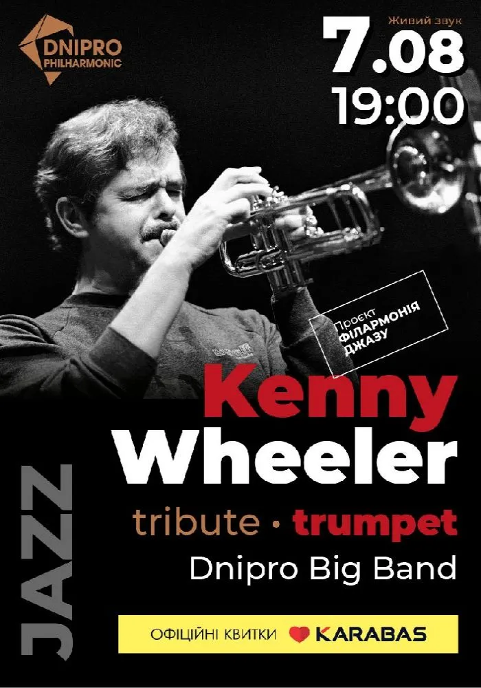 Шанувальники джазу готуйтеся до нової зустрічі з європейським джазом. У філармонії відбудеться концерт-триб'ют легендарному трубачу, флюґельгорністу, композитору Кенні Вілеру. Його музика поєднує складні гармонії, витончені оркестрові форми та глибоку емоційність. Виконавці: "DNIPRO BIG BAND".