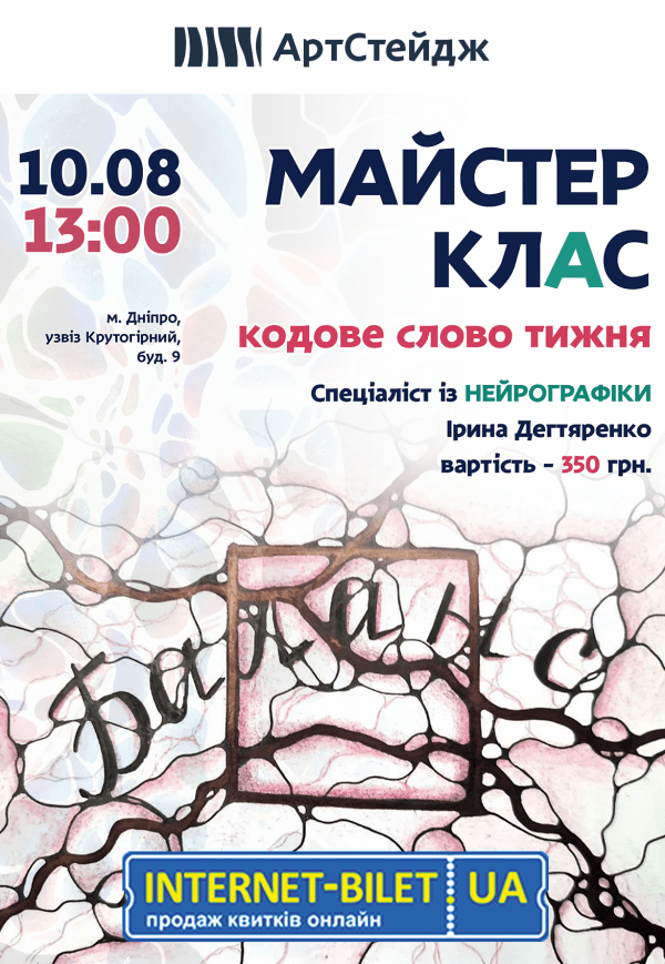 ДніпроАртСтейдж запрошує на першу серпневу нейрографічну зустріч з Іриною Дегтяренко "Кодове слово тижня". Досвідчена фахівчиня вчитиме налаштовувати власне тіло та розум на цілий тиждень вперед. Це можливість наповнити себе ресурсом, ясністю та енергією саме на цей тиждень.