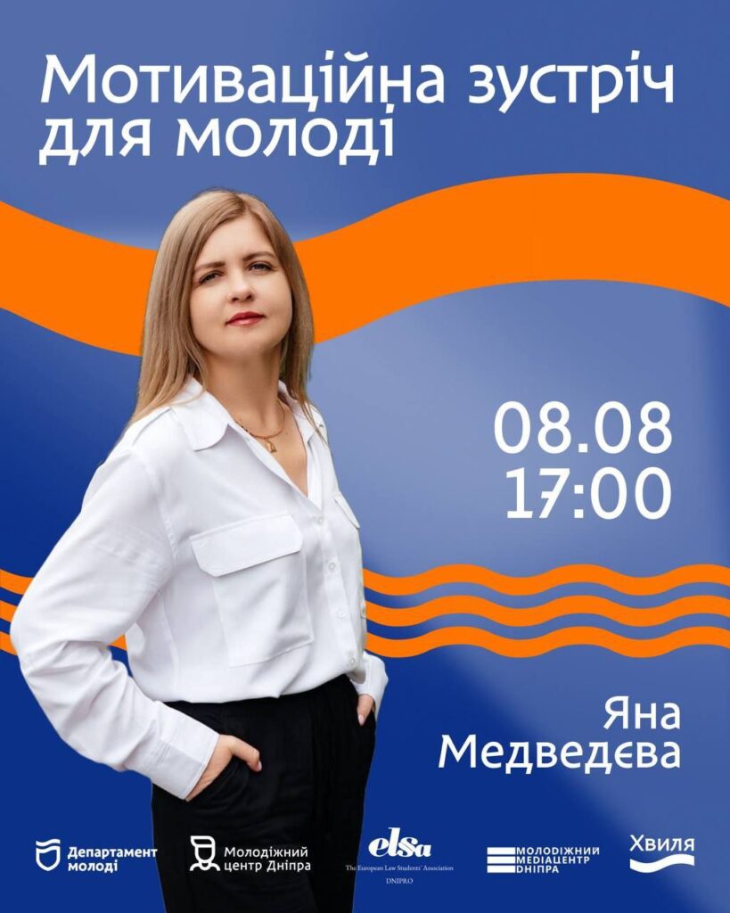 Яна Медведєва – адвокатка з 18+ років досвіду, консультантка мікробізнесу, авторка десятків успішних грантів, активна громадська діячка запрошує на мотиваційну зустріч для молоді "Твій перший бізнес: з чого почати, коли нічого нема?"