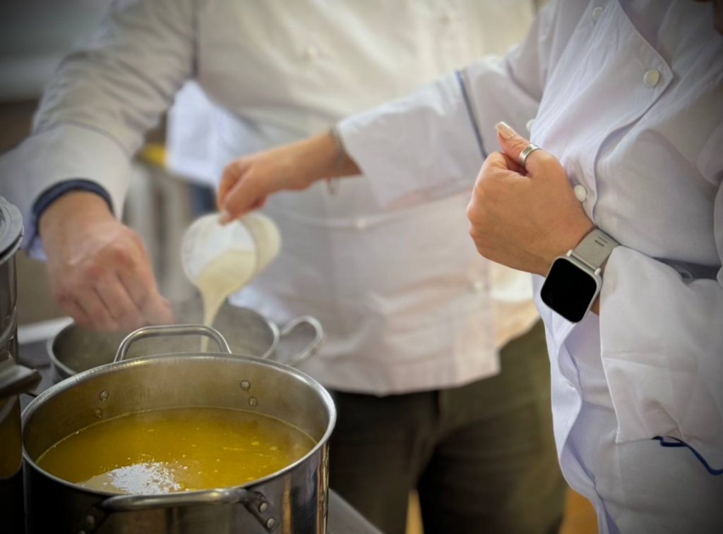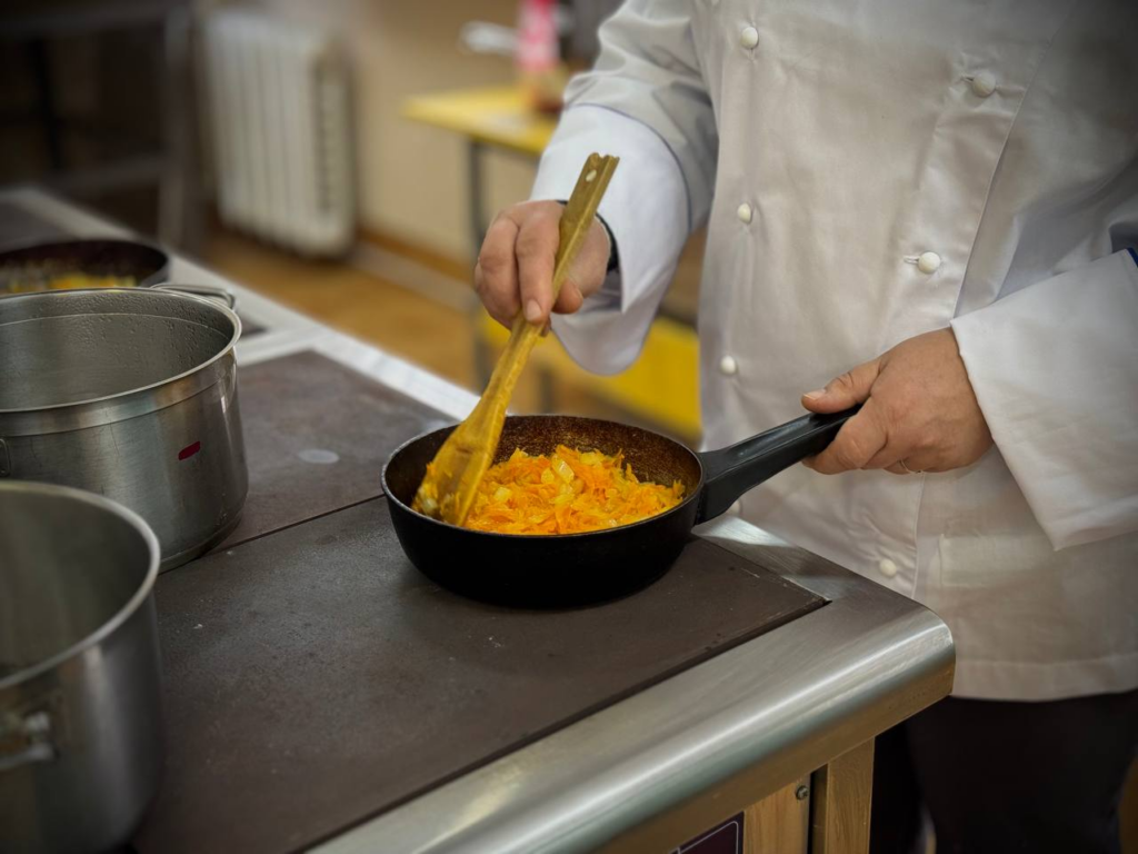 "Ми починали з нарізки. І це зовсім не банально — кубики, соломка, правильна робота ножем. Потім були сирники, страви з риби, курки, а тепер — перші страви. Сьогодні, наприклад, готували крем-суп із куркою. Я думав, буде важче. Але з таким педагогом, як Тетяна Петрівна, усе дається легко", — каже Роман.
