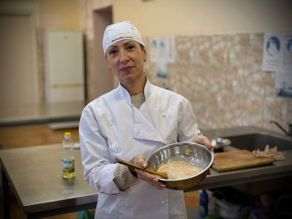 "Ми починаємо з нарізки, напівфабрикатів, бульйонів, перших страв. Готуємо котлети, банкетні страви, українську автентичну кухню, шпундру, банош, лазанью. Але також готуємо те, що зараз затребуване в закладах харчування", — розповідає викладачка.