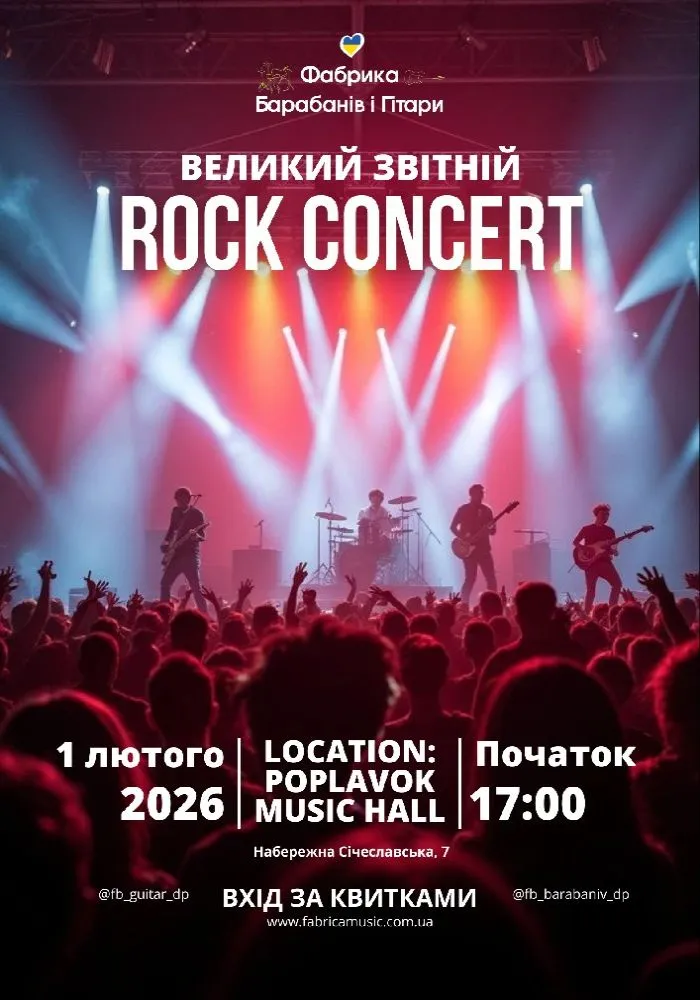 Великий звітний концерт "Фабрики Барабанів і Гітари". Це справжній драйв, ритм та енергія, яку створює професійний бенд музикантів на одній сцені разом з учнями. За допомогою живого звуку та своєї пристрасті до музики вони доведуть, що музика – це свобода, драйв та справжні емоції тут і зараз.