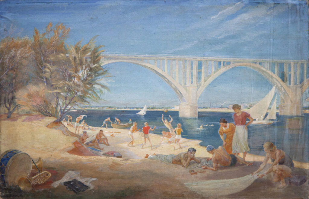 "Ця картина водночас є і побутовою замальовкою, і візуальним свідченням того, як дніпряни проводили час на березі річки у довоєнні роки. Робота виглядає дуже світлою і радісною, навіть попри те, що створена в один із найтрагічніших періодів ХХ століття", – зауважує Сергій Несмачний, заступник директора з наукової роботи Дніпровського художнього музею.