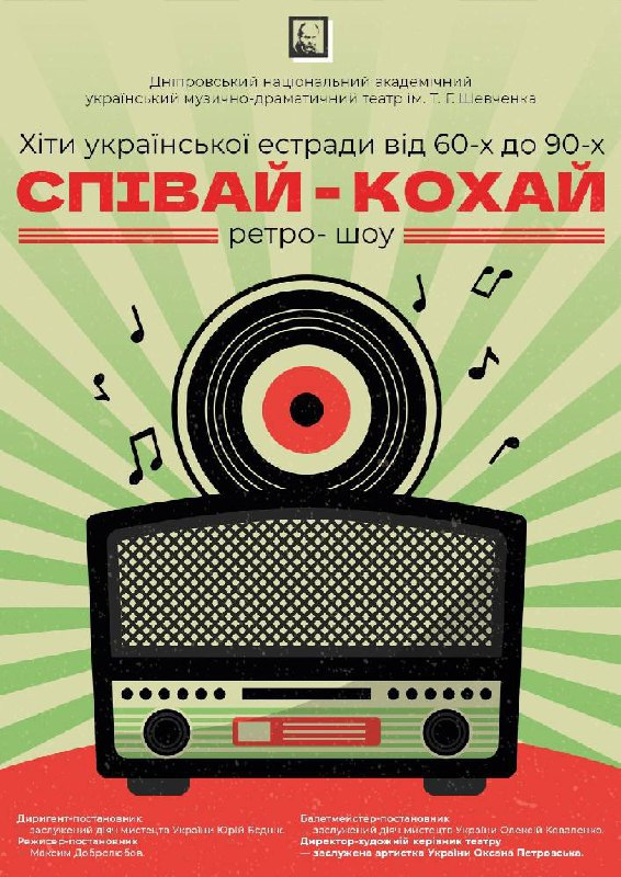 10 січня 16:00. Дніпровський національний академічний український музично-драматичний театр ім. Т. Г. Шевченка, вул. Воскресенська, 5. Квитки за посиланням.