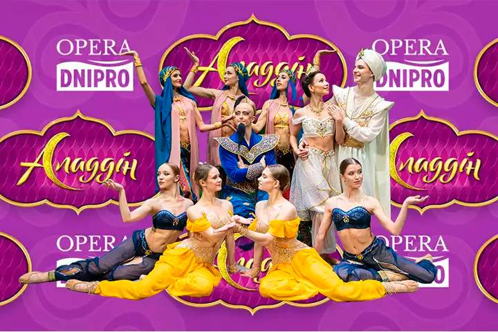 Прем’єра пригодницького балету "Аладдін" — неймовірної історії, у якій східна казка оживає в яскравих танцях, фантазійній музиці та захопливих сценічних ефектах. Глядачі поринуть у атмосферу гомінкого східного базару, зустрінуться з підступним чаклуном Джафаром, побачать магічного й всесильного Джина, розкішні скарби Печери Див та легендарний килим-літак, що дарує відчуття справжнього дива.